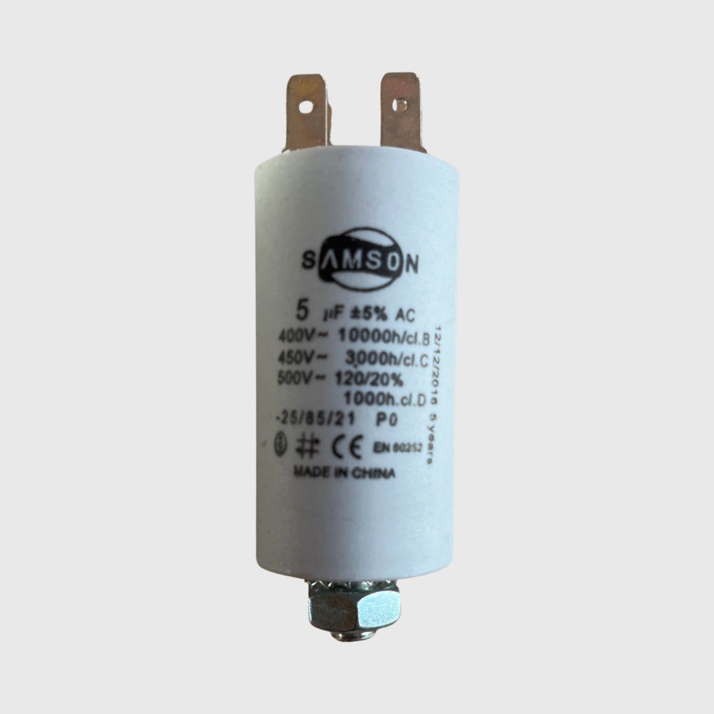 يتميز بسعة 5 ميكروفاراد، ويستخدم غالبًا في محركات التيار المتردد والمستمر، ومضخات المياه، وأجهزة التكييف، وأدوات الصناعة الصغيرة. مصنوع من مواد عالية الجودة لضمان مقاومة عالية للحرارة والتآكل، وعمر تشغيل طويل، مع قدرة على تحمل التغيرات المفاجئة في الجهد والتيار، ما يساهم في حماية الأجهزة وتحسين كفاءة تشغيله