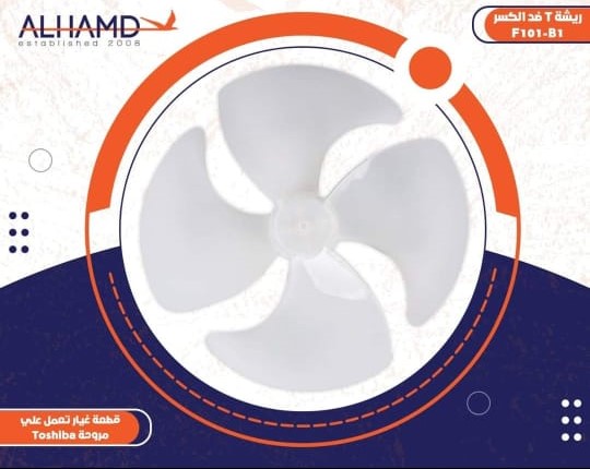 • ريشة بلاستيكية ضد الكسر: توفر وزنًا خفيفًا وسهولة في التركيب، وتتميز بمقاومة جيدة للكسر.